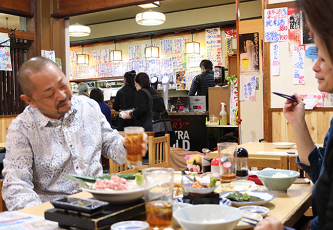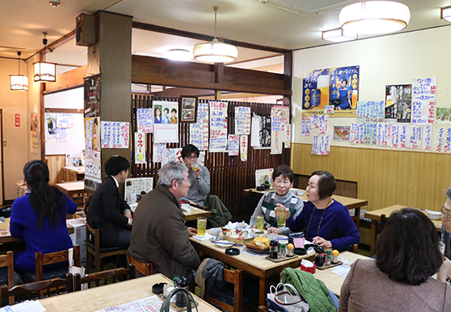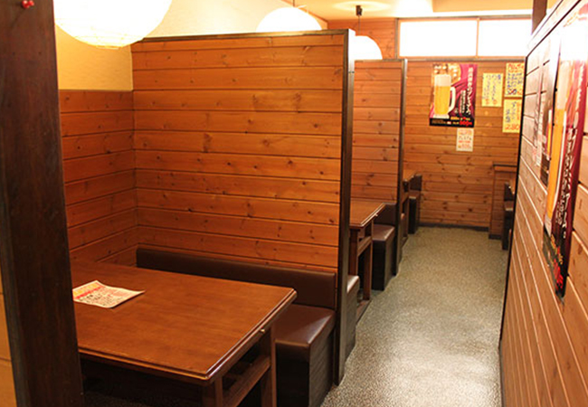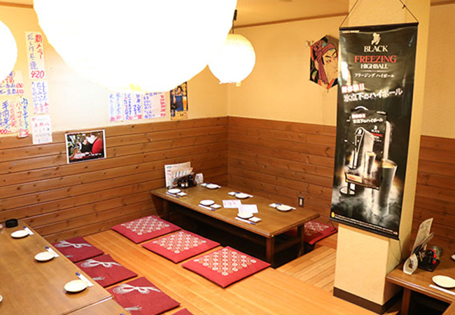 昭和な香り漂うレトロな造りになっており、肩がくっつくような賑やかな大衆居酒屋となっております。カウンター席とテーブル席をご用意しており、周りには手書きメニューが壁一面に貼ってあり、昭和の空気をさらに色濃くしています。